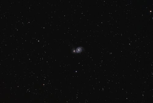 M51は割と明るくて撮り易いのですが、小型望遠鏡だと流石に小さくて迫力がありません。 過去VC200L鏡筒で撮影して、処理した画像を見た時には感動ものでした。VC200Lは手放してしまったので、小型の焦点距離528mmではどうかなと敢えて撮ってみました。 んで…