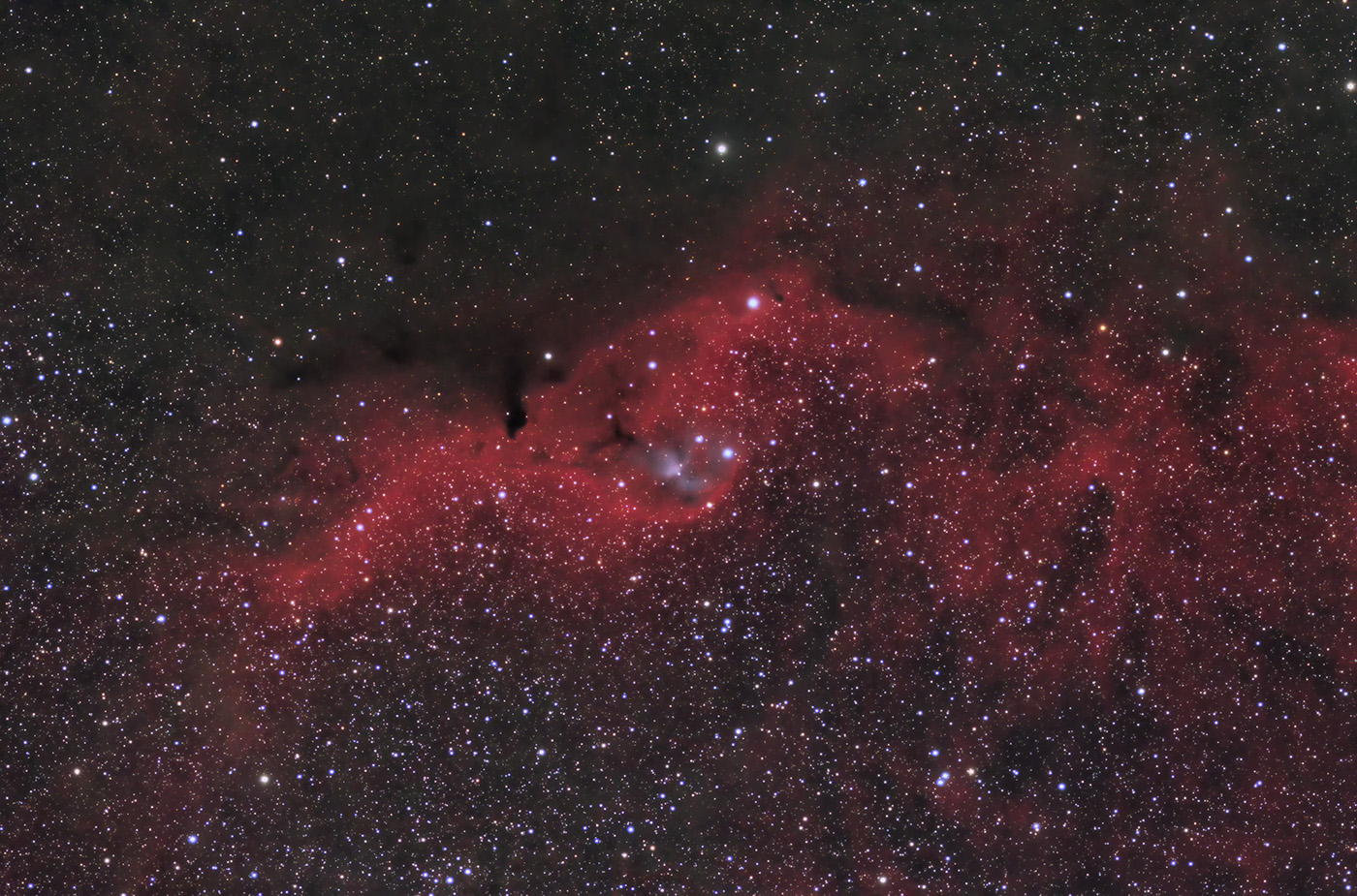 エンゼルフィッシュの背びれ辺りを撮ったもので、赤星雲はSh2-264の一部、少し目立つ暗黒分子雲がB31、白っぽい反射星雲はLDN1584があって少し賑やかだ。エンゼルフィッシュの口先や腹ひれ辺りも狙っても良さそうだが、もうシースンオフなので来期での対象だ。