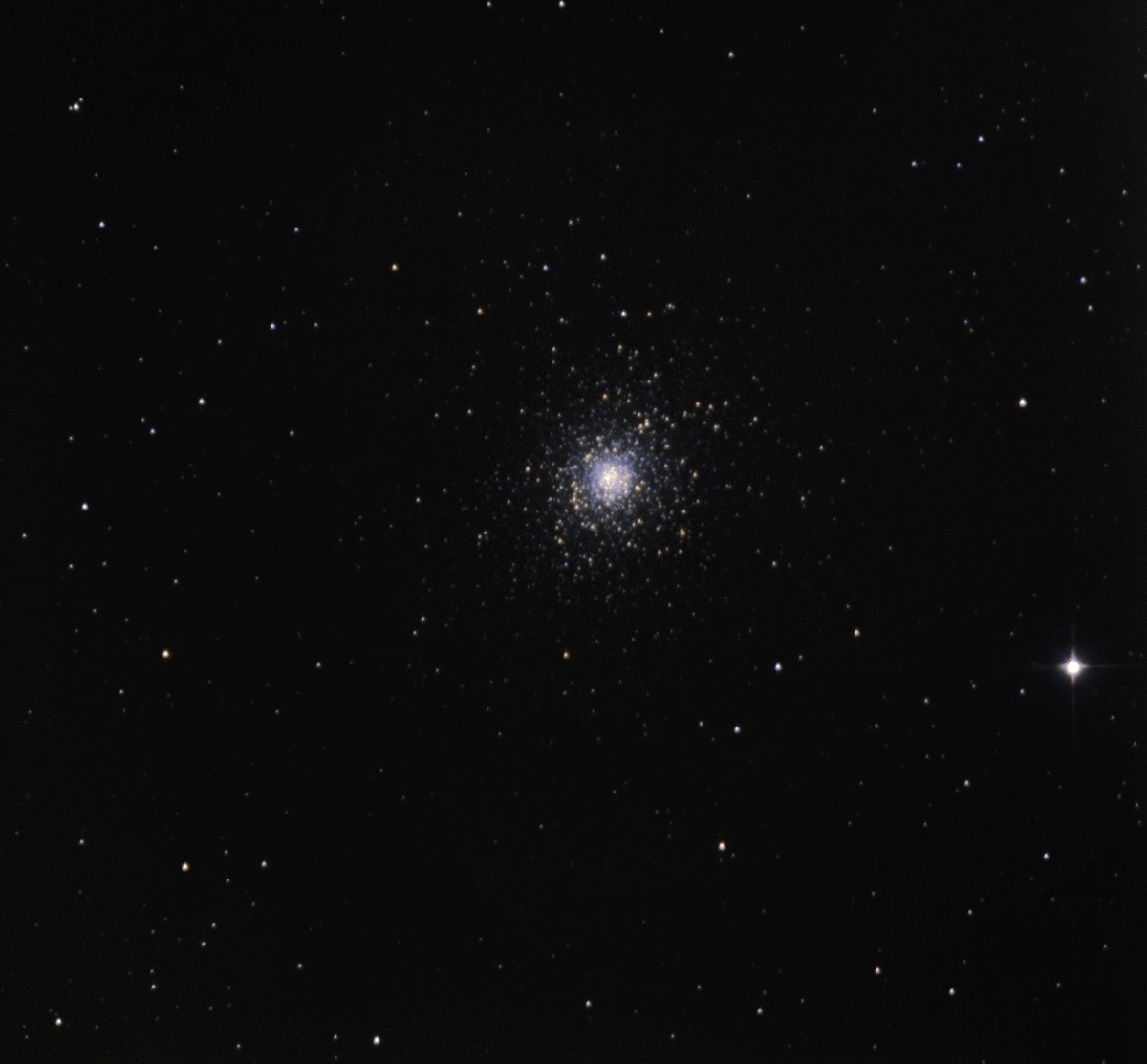 山は夜半には曇るという予報なので、今宵はベランダで・・・と始めた。M64黒眼銀河を撮ろうと望遠鏡を向けたら、あらま、もう直ぐ庇で見えんくなってまうではないか。已む無く天の赤道付近で他のメシエは何じゃらホイと・・・目ぼしいものはM5しか無い。北半球で見える球状星団の中でこのM5の明るさはNo1.ながら、ファインダースコープでは分からなかった。カメラでは1秒の撮影で出てくるのだが。